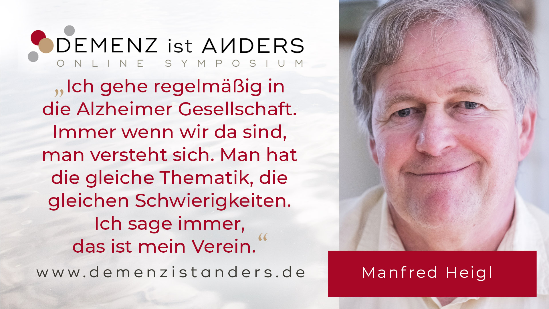 ursprünglich aus Oberbayern, erhielt 2020 im Alter von etwa 52 Jahren die Diagnose Alzheimer. Trotz der frühen Diagnose blieb er aktiv, engagiert sich in der Alzheimer Gesellschaft Hamburg, im Beirat der Deutschen Alzheimer Gesellschaft und nutzt seine Erfahrungen, um offen über das Leben mit Demenz zu sprechen. Manfred Heigl betont, dass Menschen mit Demenz noch viel können und sieht die Demenz als „ungewolltes Geschenk“.